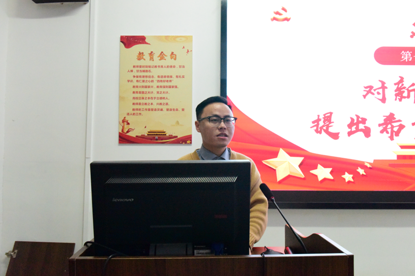 宣誓结束后,进行宣读《中国共产主义青年团章程》议程,新老团员们进一步明确自身责任与义务,深化对团组织的认知。紧接着,新团员代表叶怡繁发言,她表达了加入共青团的激动与自豪,承诺将以团员标准严格要求自己,在学习与实践中践行入团誓词;最后,老团员代表李浩然以“先行者”的身份分享成长经历,鼓励新团员在团组织中勇于担当、积极作为,用“先行者的脚印照亮后来人的道路”。