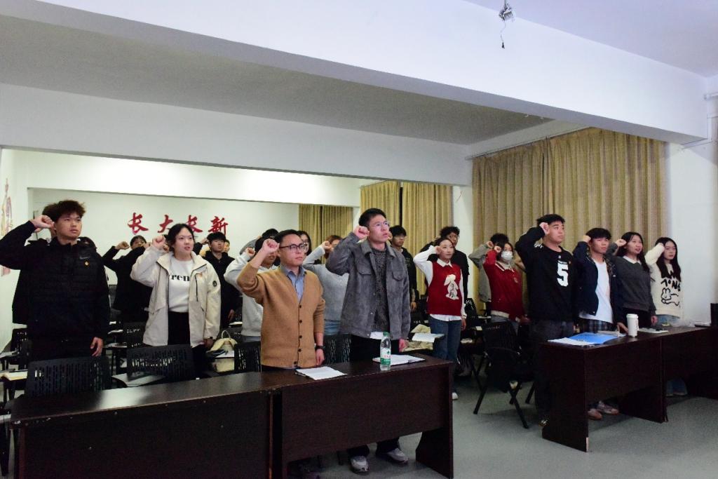 【通讯员 高思远 蔡炯镗/文 唐鑫/摄】为进一步强化共青团组织建设,引导青年学子坚定理想信念,11月3日19时许,sjb世俱杯中国官网入口于5教203举行入团仪式。仪式由唐磊磊主持,辅导员贺康锋、兼职辅导员余洋波及32名新老团员共同参与。