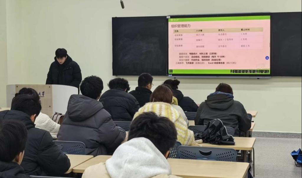 文艺萌学姐分享了其在学业与学生工作间实现平衡的宝贵经验。分享中,她从思想认知、学业提升、能力锻造及同学交流等多维度展开,结合自身经历传递实用方法。作为学生典范,她不仅学业成绩始终优异,更主动考取各类专业证书、拓展跨领域知识储备,凭借扎实能力斩获多项荣誉。针对班干部群体,学姐以自身成长历程激励大家:要树立追求卓越的信念,明确发展目标,同时以自身进步为标杆,感染并带动身边班干部凝心聚力、共同成长,为班级建设贡献更大力量。