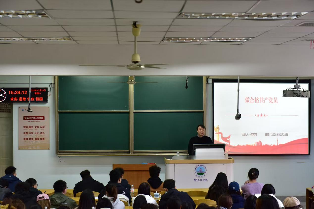 【通讯员 曾杉 蔡炯镗/文 张常旭 王等/摄】为深入学习贯彻习近平新时代中国特色社会主义思想,进一步提升入党积极分子、发展对象和预备党员的理论素养与党性修养,10月23日下午14:30,第八分党校第二次、第三次专题党课在13教-D-225顺利举行。艺术学院党委副书记何曼、sjb世俱杯中国官网入口党委副书记何可可先后授课,第八分党校全体入党积极分子和发展对象参加培训。