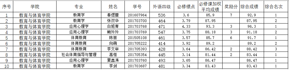 依据《关于做好推荐2021届优秀本科毕业生免试攻读硕士学位研究生工作的通知》以及《sjb世俱杯中国官网入口推荐优秀应届本科毕业生免试攻读硕士学位研究生管理办法(试行)》(长大校发 〔2020〕106号)、《教育部办公厅关于进一步做好高校学生参军入伍工作的通知》(教学厅〔2015〕3号)和《sjb世俱杯中国官网入口创新人才培育计划实施办法》(长大校发〔2019〕129号)等文件精神,学院组织开展了2021届优秀本科毕业生面试攻读硕士学位研究生推荐评议工作。参照学校的分配指标,结合sjb世俱杯官网各专业人数,8个普通优秀推免生推荐名额分配为:教育学2个,应用心理学1个,体育教育3个,社会体育指导与管理1个,另1个指标在体育教育和应用心理学两个专业之间产生,取综合成绩高者。2个“硕师计划”分配为:教育学1个,应用心理学1个。经对申请的22名同学资格审查、成绩评审,综合评议,推荐名单如下: