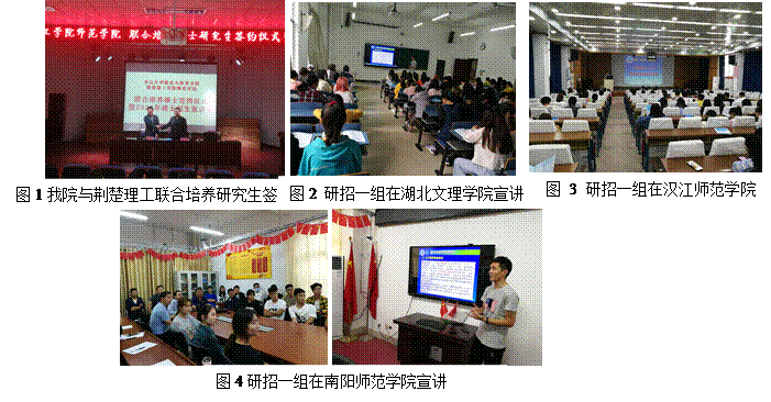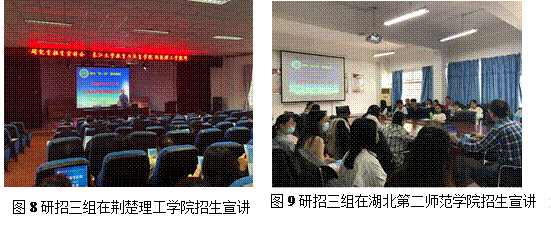 根据学校近三年录取硕士研究生外校应届生分布情况,结合sjb世俱杯官网硕士点情况和对方学校专业分布,重点选取了黄淮学院、许昌学院、周口师范学院、湖北文理学院、汉江师范学院、南阳师范学院、南阳理工学院、黄冈师范学院、湖北师范大学、湖北理工学院、湖北第二师范学院、荆楚理工学院等十余所高校为sjb世俱杯官网2021年研究生招生进校宣传单位。