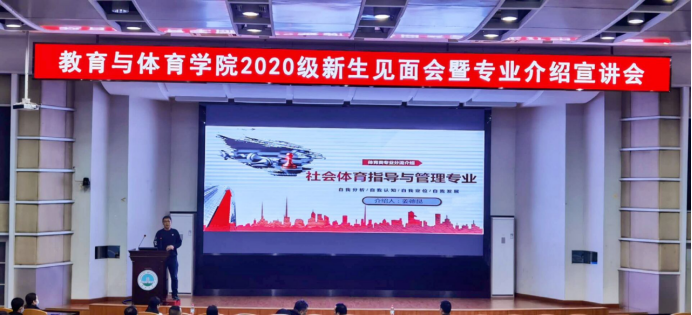 (通讯员 余若冰)2020年10月23日晚七点,sjb世俱杯中国官网入口2020级体育类新生见面会暨专业介绍宣讲在sjb世俱杯中国官网入口12号教学楼405教室正式举行。院长张相乐老师、副院长张艳红老师、副院长杜光友老师、党委副书记李则俊老师、师德标兵路国华老师、体育与教育系主任杨青宝老师、社体系主任孔祥魁老师、社体系户外运动专项主教练姜德昆老师、20级体育新生辅导员文晓武老师、新生班主任代表杨姗姗老师出席了本次大会,本次会议由副院长张艳红老师主持。