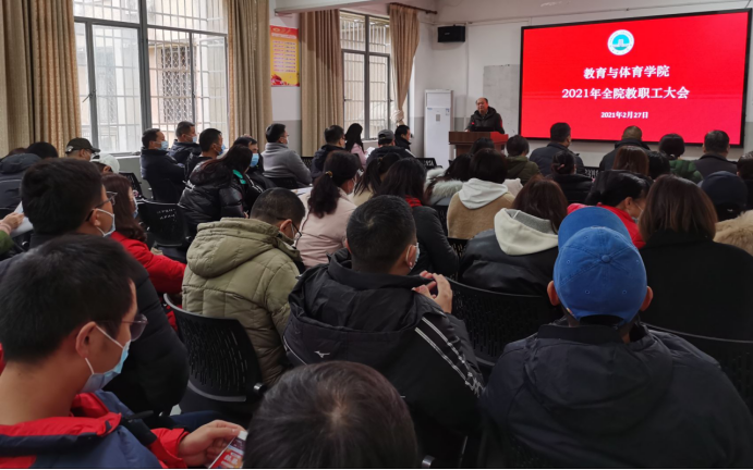 2月27日下午2:30,学院在5教203召开了全院教职工大会。会议由党委书记高明成主持,全院100多名教职工参加了本次会议。