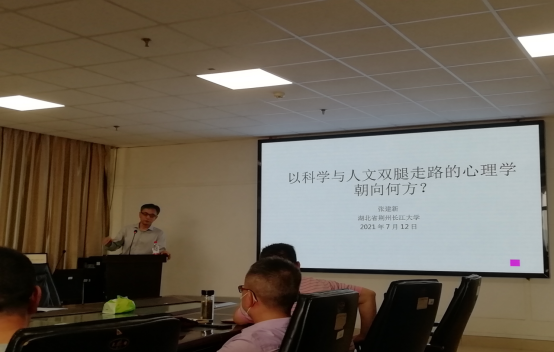 (通讯员 胡志琴)2021年7月12日下午在东校区文科大楼905会议室,中国科学院心理研究所研究员、博士生导师张建新教授莅临我校作题为“以科学和人文双腿走路的心理学朝向何方”的学术报告。报告会由sjb世俱杯中国官网入口副院长熊猛老师主持,副院长张艳红、朱晓伟老师、严磊老师、连帅磊老师、陈方老师、郑红涛老师、研究生及本科生代表参与了此次学术报告。