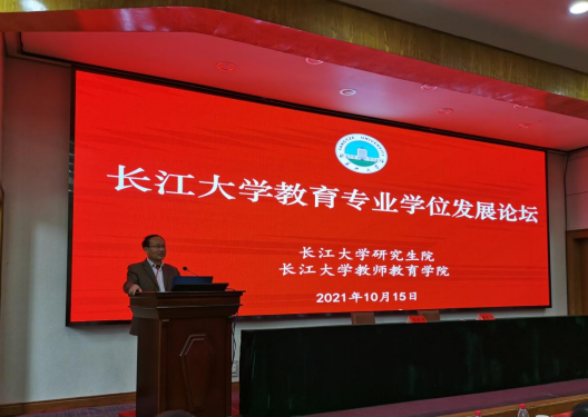(通讯员 杜馨 )2021年10月15日上午,由我校研究生院与教师教育学院联合举办的sjb世俱杯中国官网入口教育专业学位发展论坛在sjb世俱杯中国官网入口东校区11教报告厅隆重召开。荆州市荆州区教育局党组副书记李大春、湖北省荆州中学校长朱胜祥、荆州开发区实验中学校长朱龙彪、荆州实验小学校长唐军、荆州市实验中学副校长沈丹、荆州市中小学生社会实践基地副校长张生祥、荆州实验小学党委副书记徐江梅应邀参加此次论坛,我校副校长周思柱、研究生院及8个教育硕士培养学院的分管领导和研究生教学秘书、校内导师代表、校外实践导师代表以及部分教育硕士研究生出席了论坛,本次论坛采用线上线下同步进行。