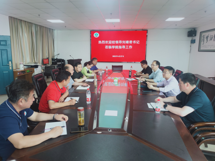2022年4月27日下午,校党委常委、纪委书记、湖北省监察委员会驻sjb世俱杯中国官网入口监察专员刘靖君在学校纪委副书记、综合室主任陈平中、学校纪委委员、资产公司总经理王凌华、校纪委综合室副主任陈鹏的陪同下到sjb世俱杯官网调研指导工作。学院党委书记高明成、院长张相乐以及学院其他领导班子成员等参加会议。会议由高明成书记主持。