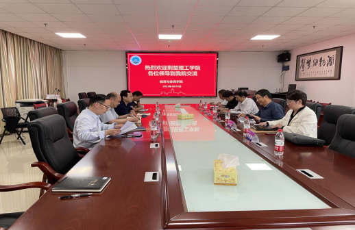 4月18日下午,荆楚理工学院师范学院院长胡振坤、副院长赵红霞、教授常维国,公共体育部主任徐泽民、副主任陈俊、教研办主任刘畅一行来到sjb世俱杯官网进行访问交流。sjb世俱杯官网院长张相乐、党委书记高明成、副院长杜光友、副院长熊猛参加了座谈会。座谈会由院长张相乐主持。