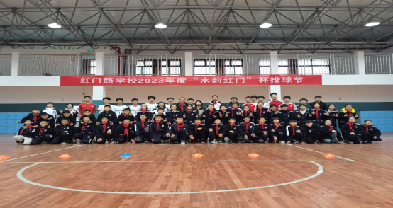 学校相关领导和杨青宝老师一起为红门路学校“水韵红门” 杯排球节中获奖班级颁发了证书。