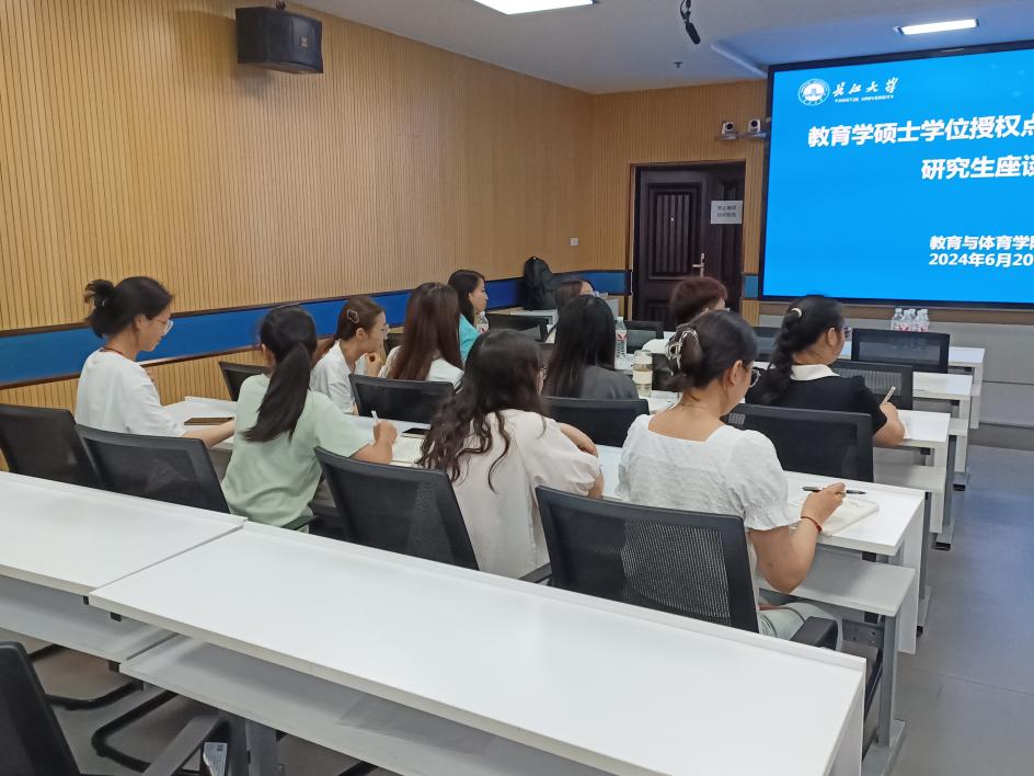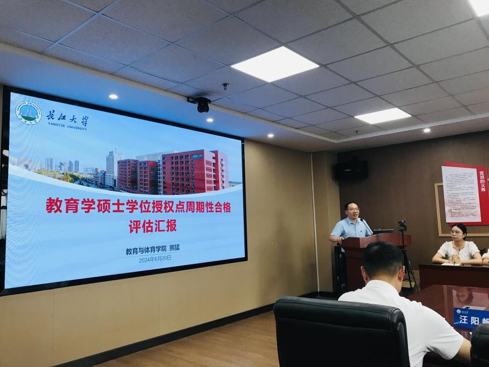副院长熊猛教授从sjb世俱杯中国官网入口总体概况、教育学一级学科硕士学位授权点基本情况、自我评估工作开展情况和持续改进计划等方面详细汇报了我校教育学学位授权点的建设进展。
