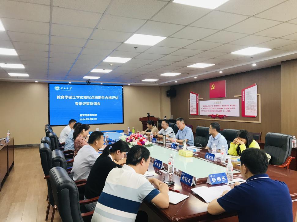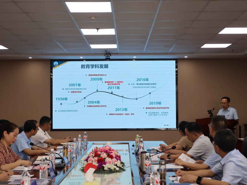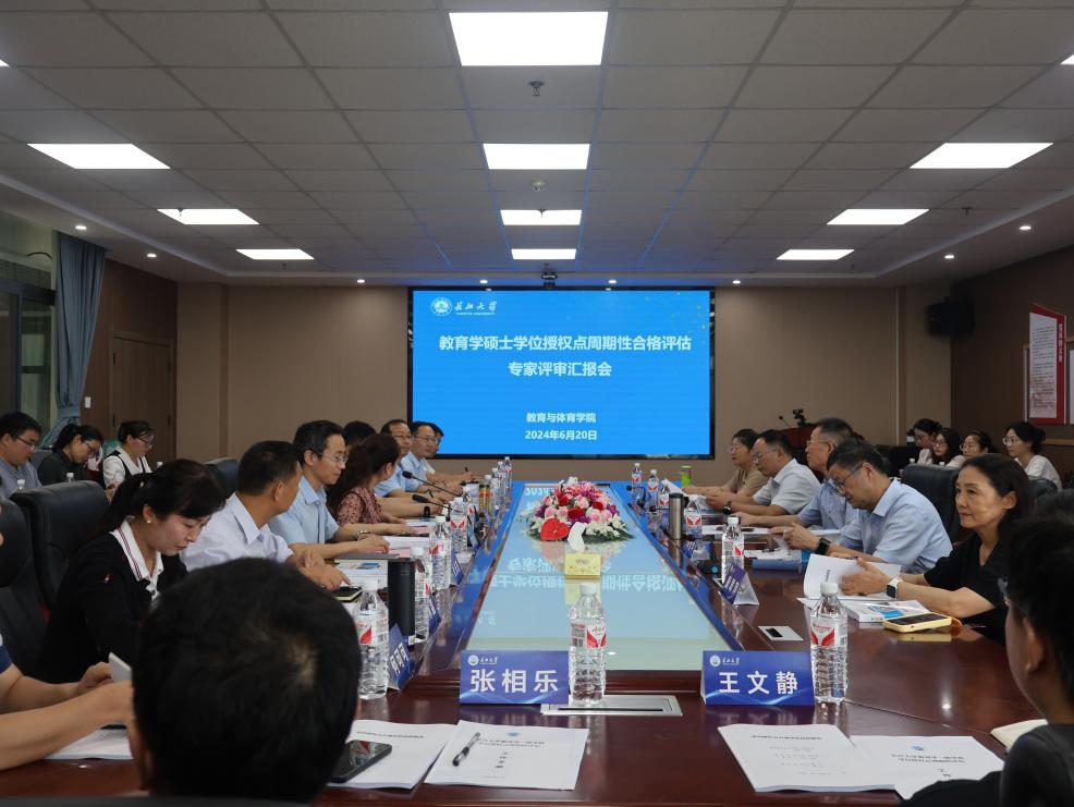 (通讯员 王文静)2024年6月20日,sjb世俱杯官网组织召开教育学一级学科硕士学位授权点周期性核验评估专家评审会。专家组由全国教育专业学位研究生教育指导委员会委员、华中师范大学教育学院涂艳国教授、华中科技大学教育科学研究院李太平教授、华中师范大学心理学院孙晓军教授、中南民族大学教育学院康翠萍教授、江汉大学教育学院兰军教授组成,涂艳国教授担任专家组组长。研究生院副院长袁海山、发展规划与学科建设处副处长王真、sjb世俱杯中国官网入口全体院领导以及教师和研究生代表30余人参加评审会。会议由院长张艳红教授主持。