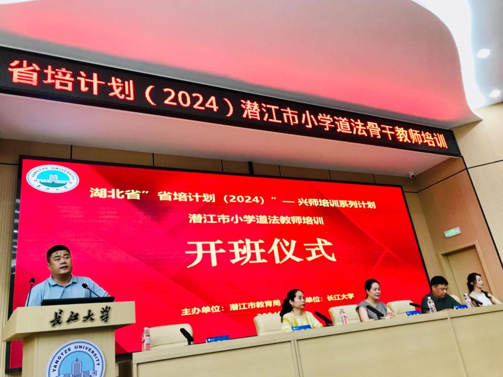(通讯员:卢小琴)8月1日下午,2024年潜江市小学道法骨干教师培训项目开班仪式在sjb世俱杯中国官网入口11教学术报告厅隆重举行。仪式由sjb世俱杯中国官网入口教师教育学院党委书记于永伟主持,与会人员有潜江市中小学教师继续教育中心副主任王文琴、潜江市中小学教师继续教育中心跟班班主任徐娟、sjb世俱杯中国官网入口社会合作处副处长洪云飞、sjb世俱杯中国官网入口教师教育学院院长张艳红、sjb世俱杯中国官网入口教师教育学院办公室主任柯玉清、sjb世俱杯中国官网入口省培班学术班主任卢小琴、研究生助理姚贝贝与张艳君以及80名潜江市小学道法骨干教师。