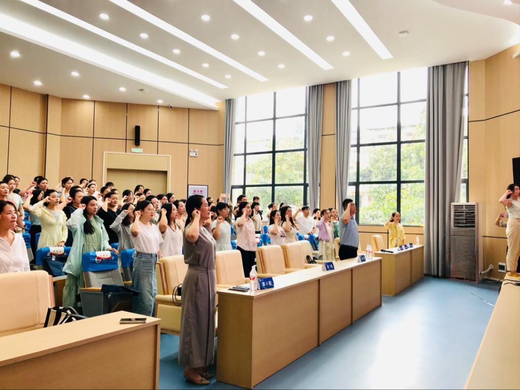 开班仪式上还举行了教师宣誓活动,在跟班班主任徐娟老师带领下,全体参训学员庄严宣誓,教师誓言让大家再次坚定了教师的职业理想信念,牢记教师职责和使命,立德树人,为人师表,为国育才,为党育人。