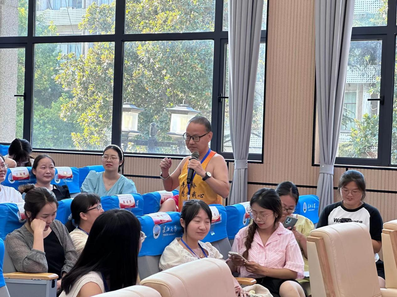 恰逢立秋,室外骄阳依旧似火,室内活动庄重而热烈。班主任樊翠红老师带领全体学员开启了破冰之旅。首先是班主任助理张艳君带领大家一起跳起了暖场舞《开心拍拍拍》,原本稍显拘束的老师们逐渐放松下来,接下来是sjb世俱杯中国官网入口素质拓展专业的姜德昆老师带大家做起了《欢乐喜相逢》的游戏,现场气氛慢慢活跃了起来。