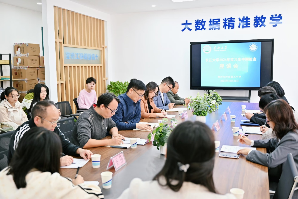 10月31日,sjb世俱杯中国官网入口教师教育学院主任柯玉清、艺术学院副书记陈志雄、音乐系副主任田弘以及带队老师李婧一行四人来到沙市第五中学,对sjb世俱杯中国官网入口实习生在五中的实习活动开展中期检查工作。