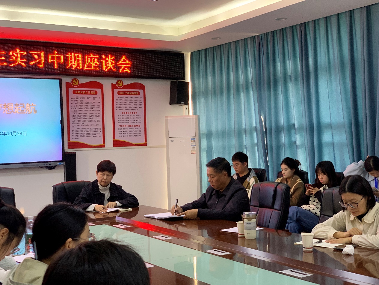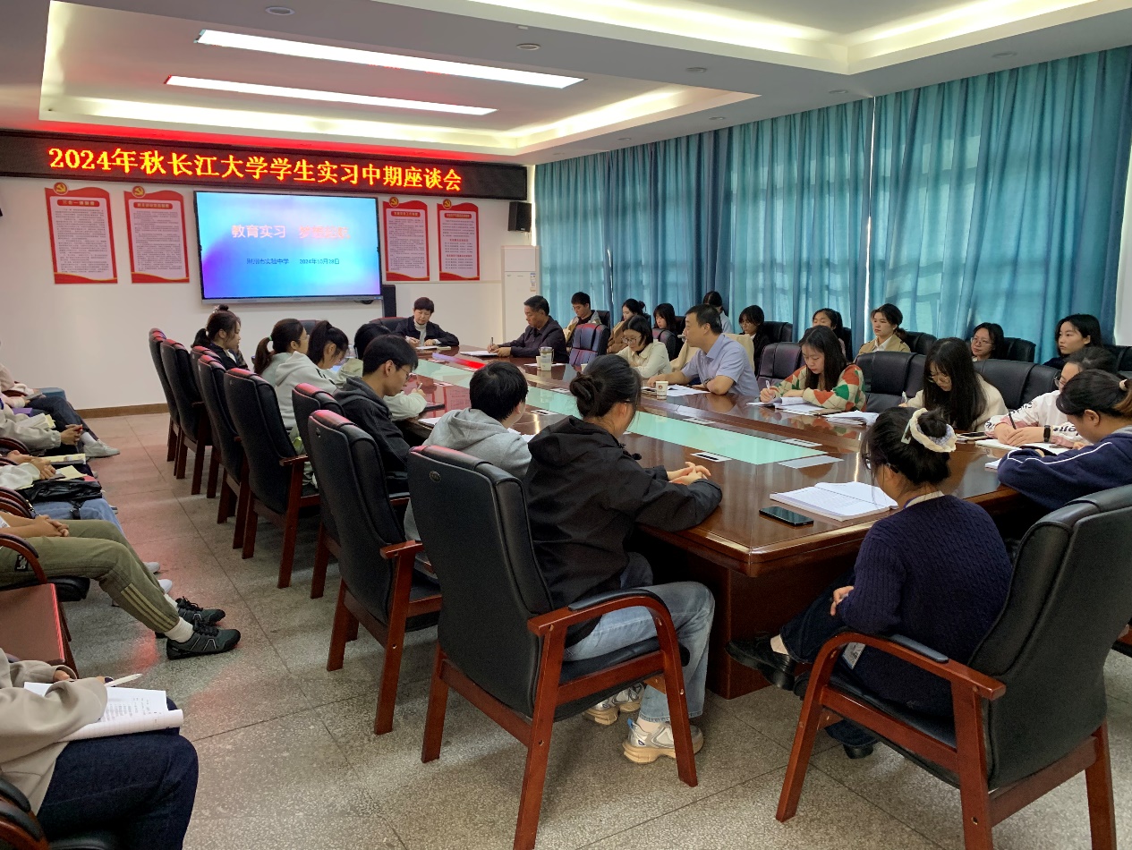 在荆州市实验中学,老师与实习生们一同召开了“教育实习,梦想启航”主题座谈会。会议由实验中学刘丽主任主持,荆州市实验中学戴明华校长,sjb世俱杯中国官网入口到访领导及全体实习生参会。