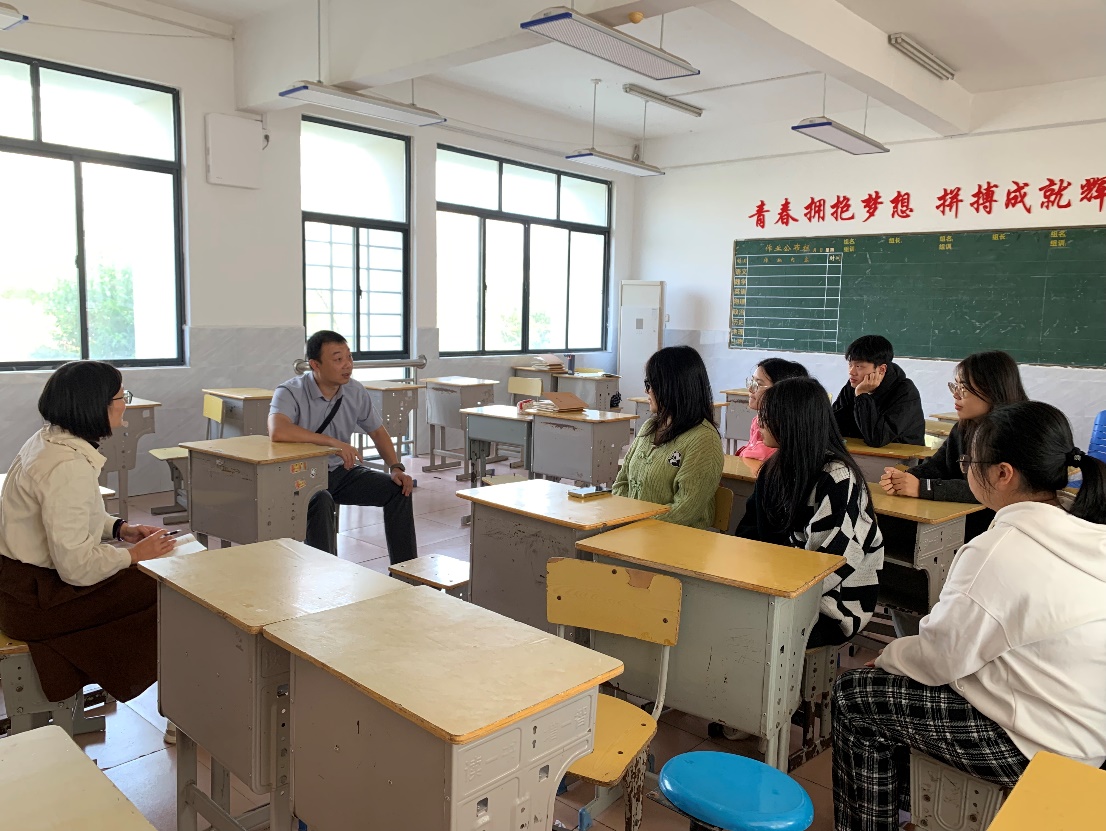 在荆南中学,何可可书记、张莉院长、陈质晶老师,深入学生实习场所,与实习生们面对面开展了交流。现场气氛融洽,领导老师们了解了实习生在表现,询问实习生对实习工作的建议。何可可书记强调,教育实习是师范生培养过程中的重要环节,希望同学们高度重视实习工作,珍惜学校提供的实习机会,认真听取指导老师的意见,及时总结经验,不断夯实师范生基本功,争取早日成为一名合格的人民教师。