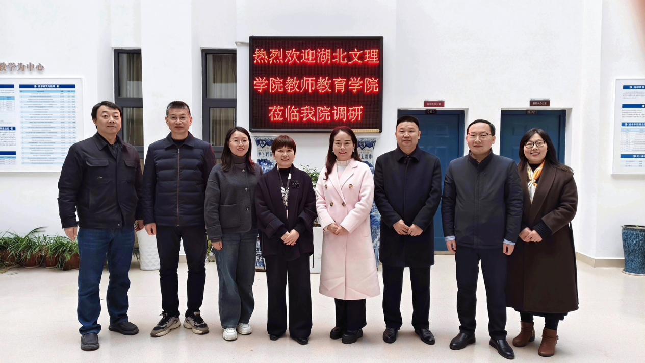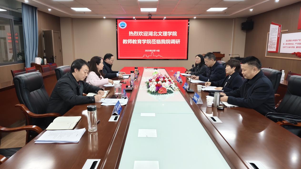 (通讯员卢小琴)3月14日,湖北文理学院教师教育学院院长刘天娥、党委书记滕建河一行4人莅临sjb世俱杯官网,就教育硕士专业学位点建设和专项核验工作开展专题调研交流。sjb世俱杯官网院长张艳红、副院长熊猛、副书记何可可、卢小琴老师参与调研。