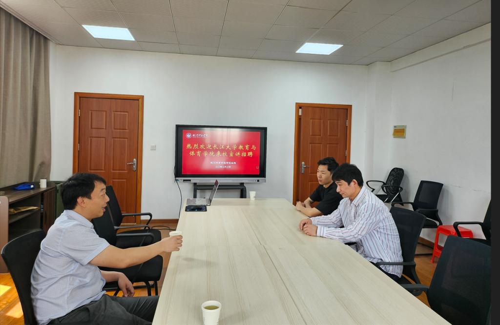 4月25日上午,宣讲团抵达武汉体育学院,与武汉体育学院研究生院就业办公室程洁主任及体育学博士生代表座谈。何可可副书记重点介绍学院体育学科“体教融合”特色方向,围绕教育专博点培育目标,解读科研启动经费、职称晋升通道等引才政策。博士生代表就人才引进政策中关注的薪酬待遇、科研支持等进一步深入交流。程洁主任对sjb世俱杯官网引才机制表示高度认可,双方初步达成体育学科资源共享合作意向。