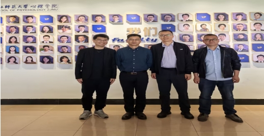 随后,在李新宇委员的陪同下,杨院长和陈方博士拜访了浙江师大心理学科带头人、著名心理健康教育与危机干预专家李伟健教授和心理学院院长孙炳海教授,参观了浙江省哲学社会科学实验室“儿童青少年心理健康与危机干预智能实验室”,杨青宝副院长亲自体验了虚拟心理干预实验。