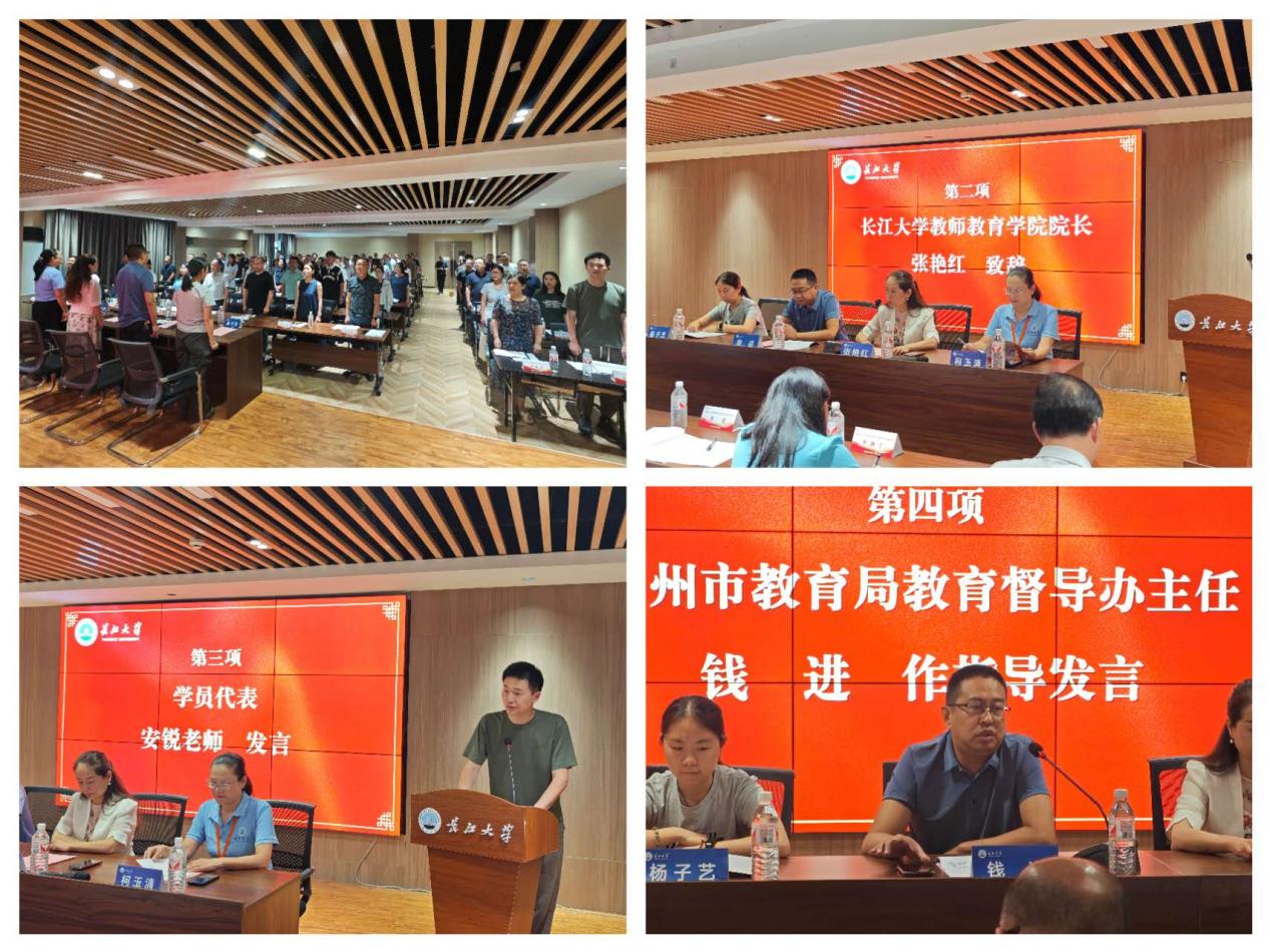 8月14日上午,参训学员陆续完成报到工作,蓄势待发。下午2时,开班仪式在庄严的国歌声中正式拉开帷幕。仪式由sjb世俱杯中国官网入口办公室主任刘海兵主持。sjb世俱杯中国官网入口教师教育学院院长张艳红在欢迎辞中强调,本次培训是贯彻落实国家教育政策、推动荆州教育现代化的重要举措,希望各位学员以“空杯心态”潜心学习,以“实干精神”践行使命。学员代表安锐老师在发言中表示,作为基层教育工作者,我们将珍惜这次宝贵的学习机会,将培训成果转化为推动县域教育发展的实际行动。荆州市教育局教育督导办主任钱进在讲话中要求全体学员“学深悟透政策、精准对标实践”,以督导评估为抓手,推动优质均衡与普惠发展落地见效。开班仪式结束后,全体参会人员合影留念,定格这一凝聚共识、携手奋进的时刻。