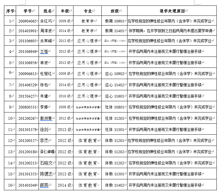 根据《普通高等学校学生管理规定》(教育部令第41号)第三十条和《sjb世俱杯中国官网入口普通本科生学籍管理办法》(长大校发〔2017〕134号)第五十一条规定,对达到退学处理条件但拒绝办理退学手续或多种方式均无法联系到本人的本科生,现以公告方式送达拟退学处理告知书,公告时间7个工作日,于2021年5月19日结束公告。在公告期内,学生可向学院提出申辩和书面陈述并署真实姓名、联系方式,邮寄或直接送到sjb世俱杯中国官网入口教学办;未在规定时间内提交申辩和书面陈述者,视为放弃陈述和声辩的权利。公告期满后,学院将按学校规定办理。
