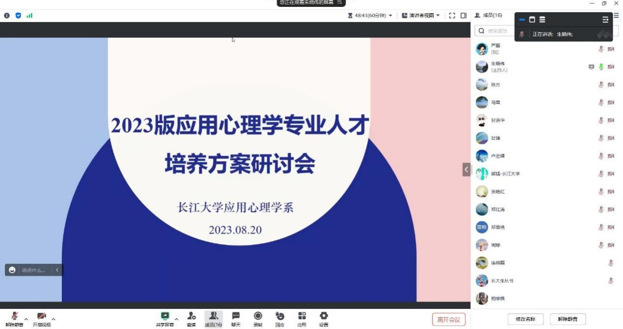 为落实学校关于修订2023版本科专业人才培养方案的工作安排,全面提升应用心理学专业人才培养质量,8月20日晚,sjb世俱杯中国官网入口应用心理学系线上召开2023版应用心理学人才培养方案修订工作研讨会议。学院院长张艳红、副院长熊猛及应用心理学系16位老师参加了本次会议。