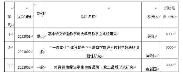 为了进一步深化sjb世俱杯官网教育教学改革,不断提高教育教学质量和教学管理水平,引导教师积极参加教学改革与研究,根据学校《关于申报2023年度教学研究项目的通知》、《关于2023年湖北省本科高校省级教学改革研究项目(大学体育专项)立项申报的通知》,经过教师申报、教学委员会评审,《高中语文专题教学与大单元教学之比较研究》等3个项目批准为2023年院级教研立项项目。现就有关事宜通知如下: