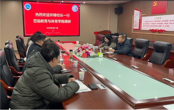 2025 年 2 月 17 日,sjb世俱杯中国官网入口开学第一天,分管校领导许锋副校长莅临sjb世俱杯官网开展调研工作,为新学期各项工作的顺利开展把脉定向。学院各分管领导在院长张艳红和书记于永伟的带领下就教学、科研、学工、教师教育等方面工作进行了详细汇报,许锋副校长就相关问题提出宝贵建议与改进措施,为学院发展注入强劲动力。