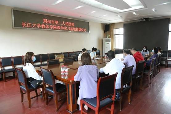 6月15日上午9:30,sjb世俱杯中国官网入口教学实习基地签约授牌仪式在荆州第二人民医院江津路部会议室隆重举行。荆州二医副院长陈松、荆州二医教学办主任张海峰、学院副院长张艳红、实验实践教学中心主任冯雪等出席签约与授牌仪式。