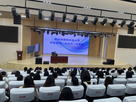 随后,实验小学城南校区王主任为师生们作了专题报告,详细介绍了学校的办学特色、课程体系建设以及校园文化建设成果。在互动环节,同学们就“双减”政策下的教学改革、学生综合素质评价等热点问题与王老师进行了深入交流。