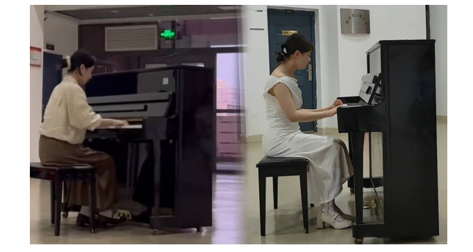 5月18日晚上,钢琴演奏考核在文科大楼三楼拉开帷幕,学生们依次登台,共演奏40首钢琴曲,其中包括《南泥湾》、《彩云追月》等脍炙人口的经典曲目。从古典名曲到童趣儿歌,学生们以娴熟的指法、精准的节奏,用指尖在琴键上悦动,将扎实的钢琴基本功和对音乐的理解融入演奏中。