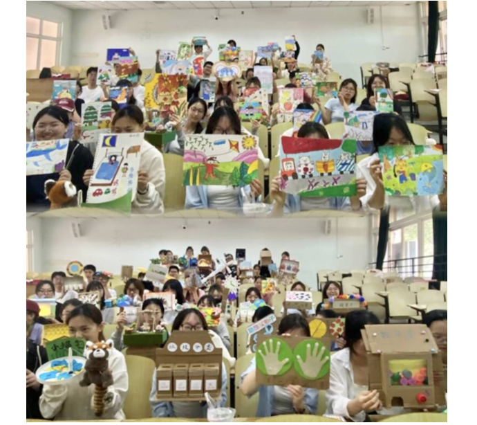 5月23日,手工和绘画考核在13-A-104举行,在绘画考核中,学生们结合幼儿年龄特点,运用水彩、蜡笔、彩铅等材料,在规定时间内创作出《丰收的季节》、《一起去旅行》、《晚安,月亮》、《狐狸与乌鸦》等生动童趣的绘画作品。手工作品更是精美绝伦,学生们自选主题用各种手工材料进行现场制作,经过巧妙的构思,设计出《四季树》、《神秘星球》、《数字时钟》、《小猫钓鱼》、《垃圾分类、保护地球》等别具一格的作品,体现出独特的创意,既具有观赏性和趣味性,又具有教育性和适宜性。