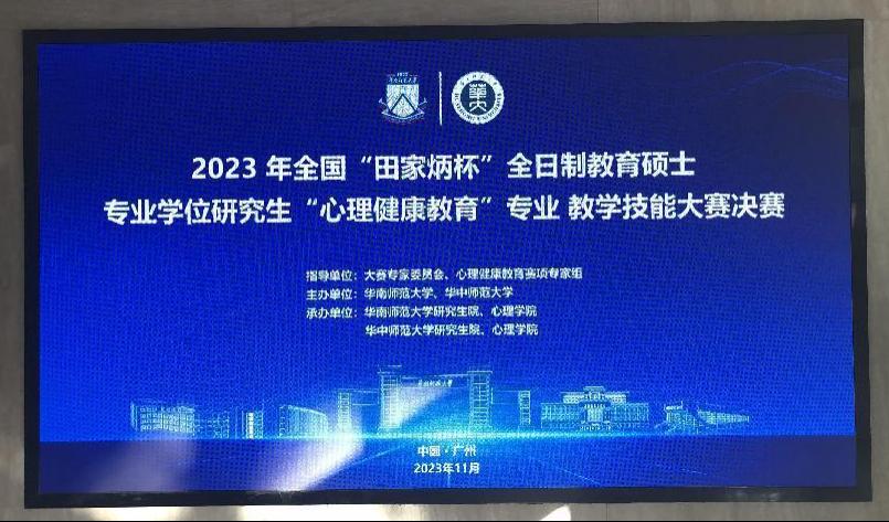 “田家炳杯”全国师范院校师范生教学技能竞赛是师范专业最高级别师范生教学技能竞赛,展现了“以赛促学、以赛促教、以赛促研”的教育理念,为师范生搭建起沟通交流、展现自我的综合性平台。2023年全国“田家炳杯”全日制教育硕士专业学位研究生“心理健康教育”专业教学技能大赛由华南师范大学、华中师范大学主办,田家炳基金会冠名赞助。竞赛由初赛和决赛两个环节组成,共有76所高校307名心理健康教育专业的研究生参加初赛,153名选手入围决赛。决赛设置模拟讲课和现场答辩环节,重点考查学生的教学设计、课件制作、模拟上课及板书、即席讲演等方面的能力,是对师范生教学技能的综合评比。大赛旨在展示全日制教育硕士专业学位研究生“心理健康教育”专业培养成果,交流教学经验,提高培养质量。