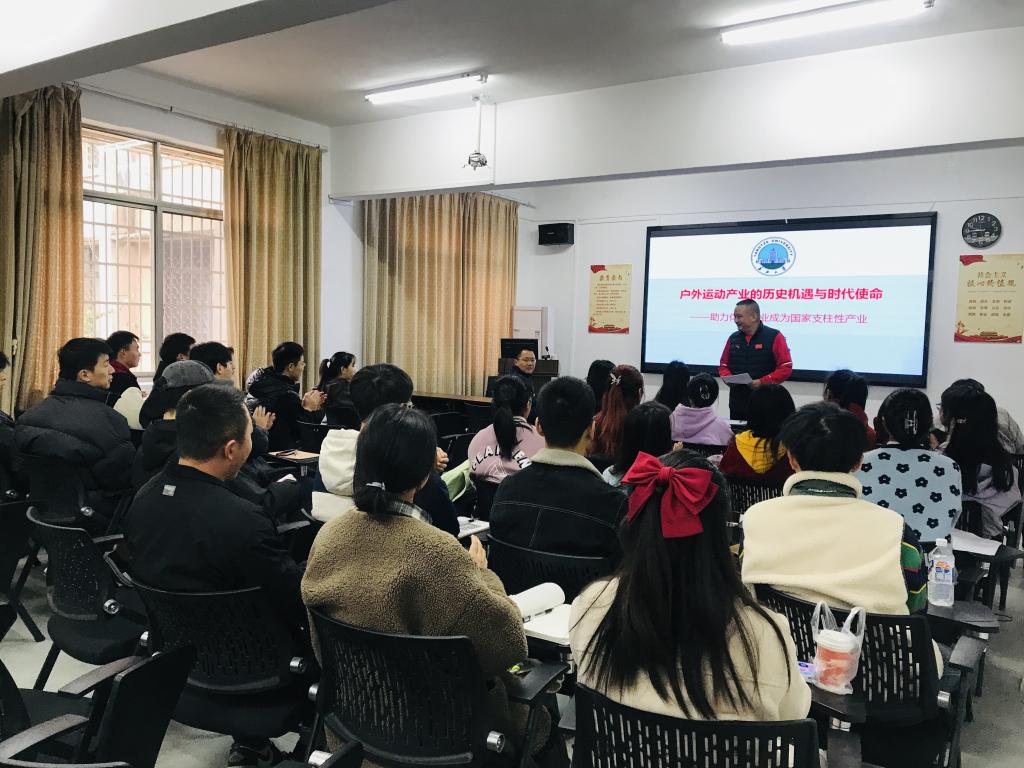 (通讯员周久远)2023年11月24日上午,sjb世俱杯官网在5教203学术报告厅举行了“sjb世俱杯中国官网入口第五届研究生科技节之导师论坛”的首场活动。本次邀请sjb世俱杯官网刘华荣博士主讲,报告主题为《户外运动产业的历史机遇与时代使命——助力体育产业成为国家支柱性产业》。讲座由社体系孔祥魁主任主持,sjb世俱杯官网体育类研究生共计40余人参加了本次活动。