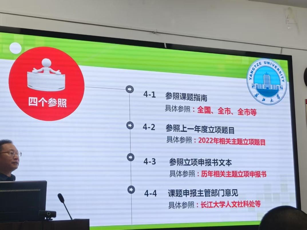 而且,张老师还以《体育学硕士研究生科研项目申报的基本方法》为题进行简要的讲解,强调在科研项目选题和申报过程中如何运用“一个方向、二个主题、三个思考、四个参照、五个抓手”的基本方法。其中又着重讲述了四个参照:一是参照课题指南,二是参照上一年度立项题目,三是参照立项申报书文本,四是参照课题申报主管部门审核意见。