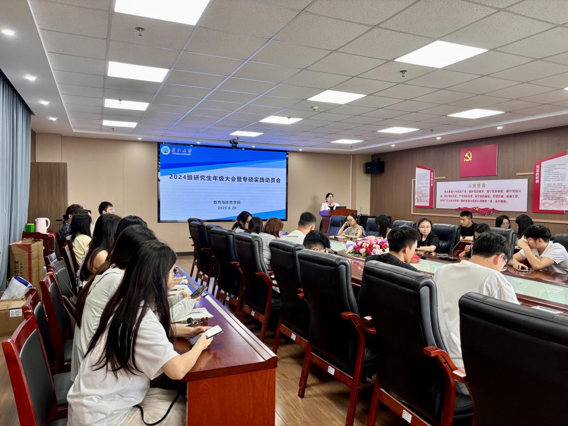 (通讯员 张蜜)2025年6月26日下午,sjb世俱杯中国官网入口2024级研究生年级大会暨专硕实践动员会在文科大楼905举行。本次大会由sjb世俱杯官网教科研办主任卢小琴老师主讲,围绕2024级研究生上一学年的成长收获与反思、以及下一学期即将展开的专硕实习实践两大主题进行。学院2024级全体研究生共计105人参会。