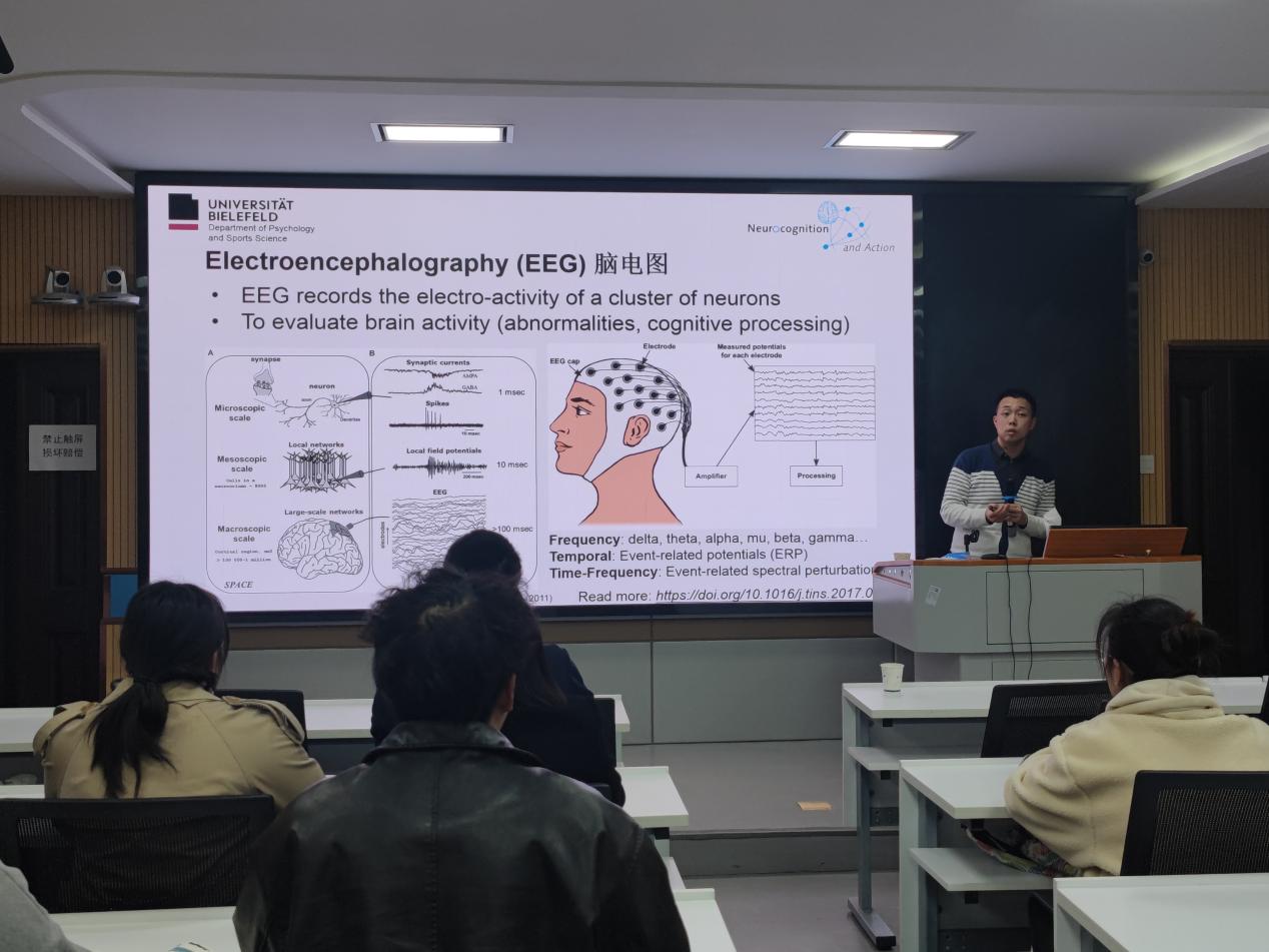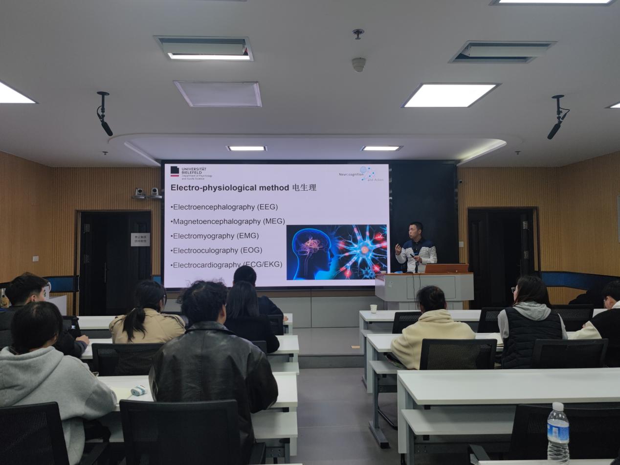 (通讯员 金楚悦)2024年3月14日晚,sjb世俱杯官网在文科大楼910报告厅举行了长江教育与体育讲坛2024年第二讲,本次特邀德国比勒费尔德大学于淋博士担任主讲人,他为sjb世俱杯官网师生带来了一场题为“认知神经方法在运动科学中的应用”的精彩报告。讲座由王积福博士主持,熊猛副院长及体育类、心理类硕士研究生聆听了此次学术报告。