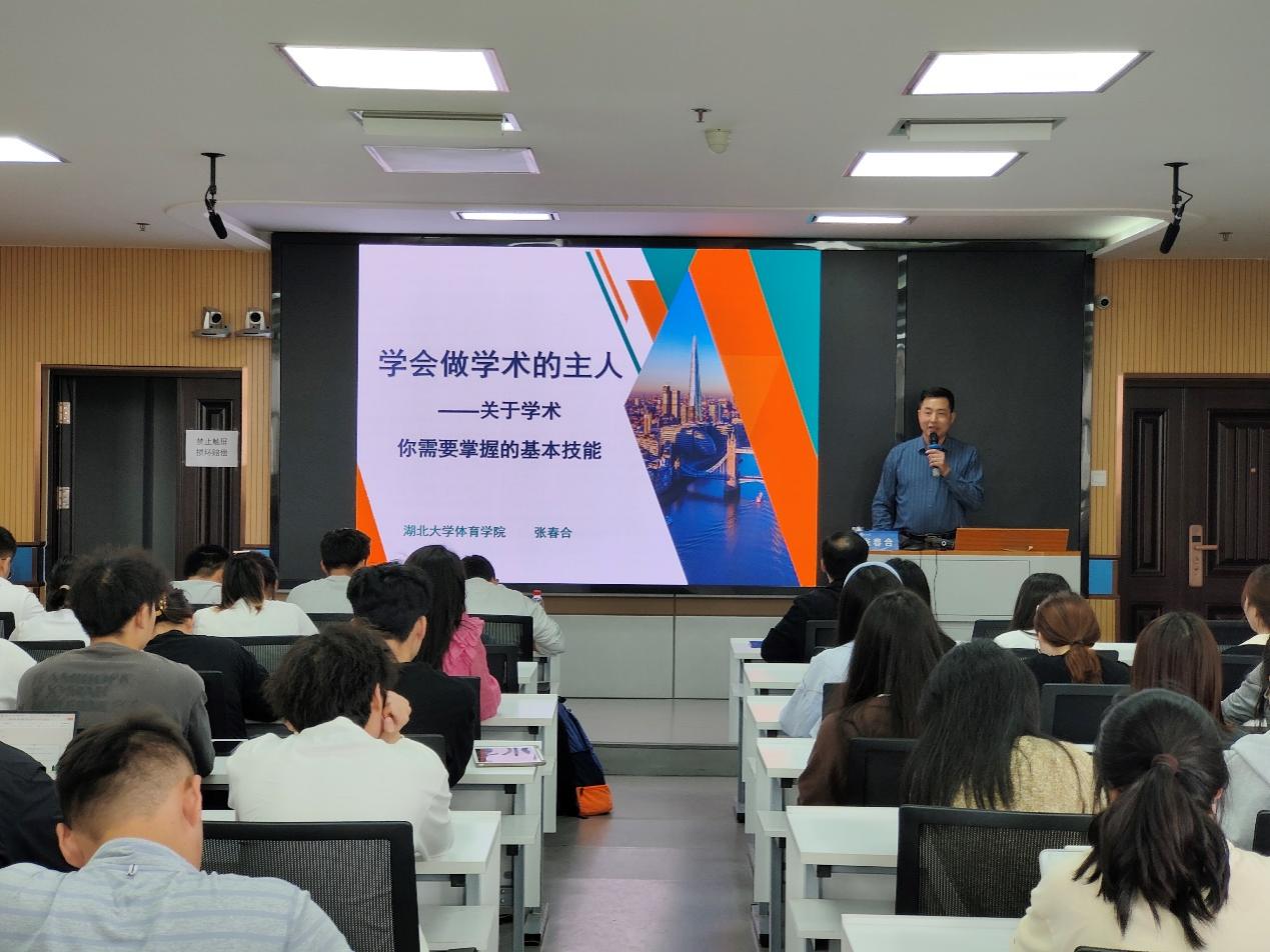 (通讯员 倪梓曦)2024年4月20日下午,湖北大学体育学院院长张春合教授受邀作客“长江教育与体育讲坛”,为sjb世俱杯官网师生讲授“学会做学术的主人——关于学术,你需要掌握的基本技能”。报告会由熊猛副院长主持,sjb世俱杯官网全体研究生在文科楼910聆听了报告。