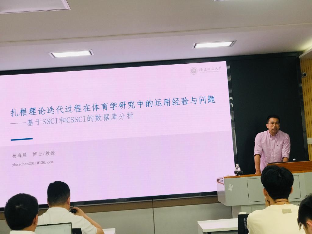 (通讯员:金楚悦)2024年6月7日下午,福建师范大学杨海晨教授在文科大楼910学术报告厅作主题为“扎根理论迭代过程在体育学研究中的运用经验与问题——基于SSCI和CSSCI的数据库分析”的学术报告。报告会由杜光友副院长主持,学院党委书记于永伟、副院长宋永晶、副院长熊猛、青年学术骨干教师及体育类研究生共计60余人参会。
