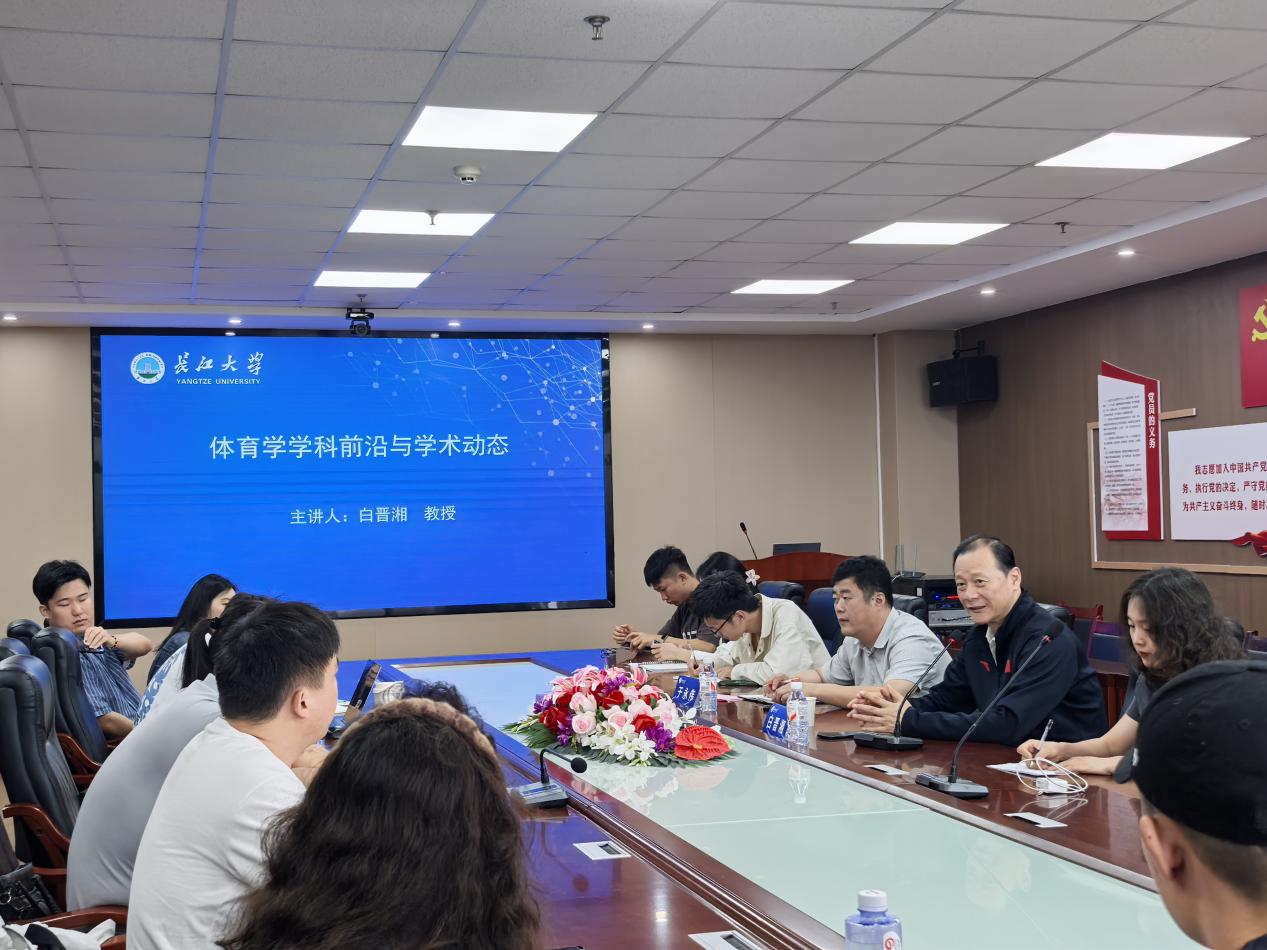 (通讯员 秦源)为促进体育学领域学术交流,助力师生把握学科前沿方向,2025年6月26日上午九点,sjb世俱杯中国官网入口特邀白晋湘教授,在文科楼905会议室开展以“体育学科前沿与学术动态”为主题的学术报告。参与本次学术报告的有sjb世俱杯中国官网入口党委书记于永伟,学院内体育类硕士生导师,以及sjb世俱杯中国官网入口2023级、2024级体育专业研究生。学院党委书记于永伟主持了本次活动。