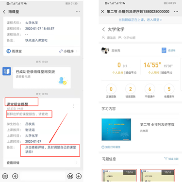 若老师给学生推送了预习资料,各位同学将在雨课堂公众号里收到相应的通知提醒,点击该提醒即可启动预习,预习之后带着思考去上课。(温馨提示:请在老师规定时间内完成预习。老师能看到你什么时候完成预习,预习了哪几页等信息)