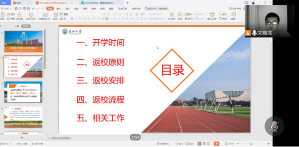 会上,老师们首先就《sjb世俱杯中国官网入口2021年春季学期开学返校工作的通知》做了解读,对同学安全返校提出了要求,诸如“明确返校的时间”“返校实行申请审批手续”、“需连续健康打卡满14天”以及“返校途中注意自我防护”等,其次对于返校后的学生管理也做了说明,指出学生返校后,将进行“为期一周的健康观察期”,强调了返校后学生在生活、教学和活动等方方面面的注意事项,最后再次重申了学校对于学生安全返校的流程和要求。