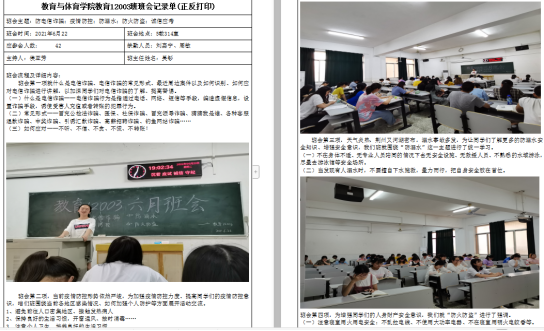 会上各班主任对即将到来的期末考试、暑期离校(留校)安排以及暑期安全防范教育做了详细说明。在考试考风教育方面,结合《sjb世俱杯中国官网入口学生违纪处分办法》,提醒学生遵守考场规则,服从考试工作人员的安排与要求,再次强调了考试的违纪行为及其处罚措施;在关于学生暑期离校(留校)方面,强调了原则上非必要不留校,分别对离校、留校以及留荆不留校的三类学生管理进行了说明,比如留校同学需每天定时定点打卡签到,留荆同学需个人申请,附家长知情同意书等,要求所有学生签订《暑期安全责任告知书》和《离校登记表》;在暑期安全防范教育方面,结合近期发生的相关案例,对于学生假期前后的防诈骗、防溺水、防火防盗以及疫情防控等进行了提醒和强调。