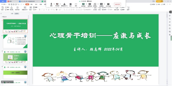 (通讯员张紫宇)为进一步了解大学生心理健康,帮助学生缓解压力,积极应对成长中的挫折,提升心理骨干能力,4月22日至29日,sjb世俱杯中国官网入口通过线上线上方式,开展了以“应激与成长”为主题的心理骨干培训,全院500多名心理骨干参与了培训,培训由学院心理专干顾志辉老师和心育部部长田凤婷主讲。