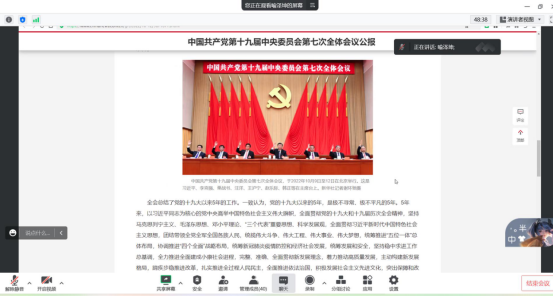 此次会议公报学习有利于同学们进一步深入学习二十大报告精神,激励同学们永远感党恩、听党话、跟党走,踔厉奋发、勇毅前行,努力成为一名新时代“四有”大学生。