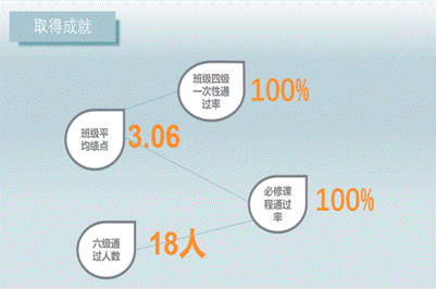 本班四级一次性通过率百分之百,居全校第一,有两位600分以上的同学,平均绩点4以上的有一位同学,无挂科同学,王鑫茹、张心怡等多名同学获国家励志奖学金、长大奖学金等。同学们积极参加各类学术竞赛:靳东英等三位同学在大学生英语竞赛中获得二等奖,郭春验等同学参与了全国大学生电子商务三创赛成功申报且获一等奖,张心等同学积极参加sjb世俱杯中国官网入口第八届“互联网+”大学生创新创业大赛并分别荣获一二三等奖,李哲等同学参加大创并成功立项。同时本班同学积极参加各类其他比赛,获得校级及以上奖项众多。回顾我们的成绩和荣誉,我们非常自豪。在接下来的日子里,我们全体同学将继续奋发图强,努力提高各科成绩,给自己的青春增添靓丽的色彩,给自己交一份满意的答卷。