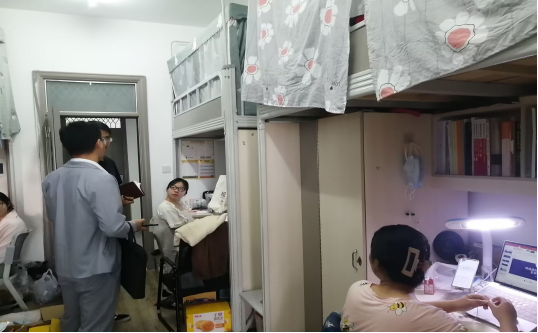 即将进入毕业季、离校季,为保证更多同学能够在离开校园之前找到工作,顺利走上工作岗位。辅导员顾志辉老师和喻泽坤老师来到学生宿舍,进入每间宿舍与学生亲切交流,询问是否找到工作、笔试面试准备情况、论文准备情况等。对于目前还未就业的学生,两位老师及时了解并记录其未来规划以及求职意向,定点推送符合条件的招聘信息,鼓励学生积极报名,有困难、有需要及时找辅导员帮忙。对于目前在徘徊犹豫的同学,帮助其分析利弊,把握机会,尽快确定工作岗位。
