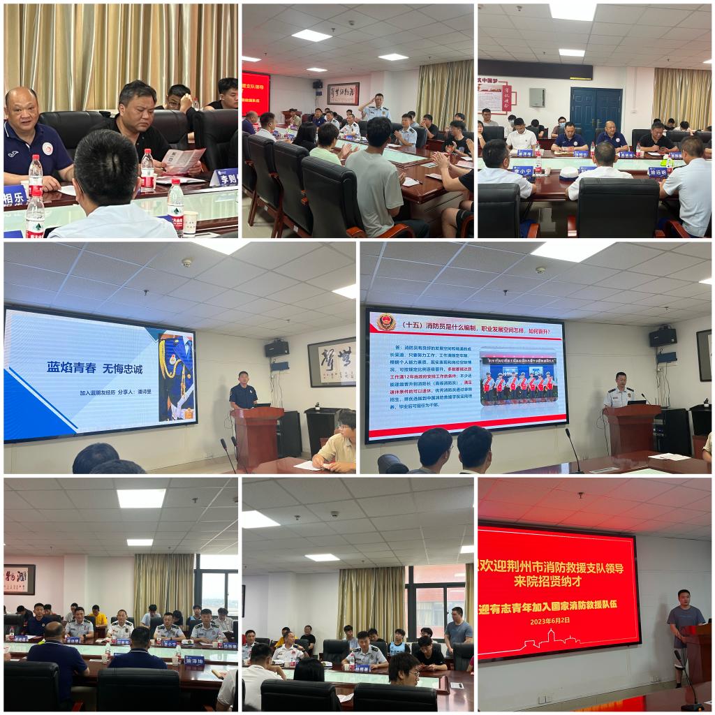 为引导毕业生树立正确的职业观、就业观和择业观,促进毕业生顺利就业,实现人生价值。 6月2日下午15:30,sjb世俱杯中国官网入口与荆州市消防救援支队在文科楼905室顺利举行招聘宣讲会。会议由院党委书记高明成主持,院长张相乐、院党委副书记李则俊、就业专干喻泽坤、荆州市消防救援支队政治部主任阳家军、队务督察科科长李小宁、新训队队长喻远明、新训队班长肖雨豪及多名新训消防员和大四毕业生出席本次宣讲会。