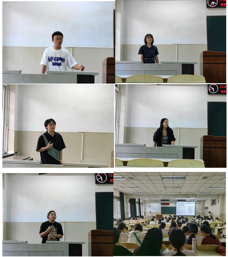 此次动员大会还邀请了心理学、教育学和体育专业的周久远、钟慧怡、孙家伟、刘静博、李佳五位同学分享了各自的考研经验。他们主要从考前准备、院校选择、复习方法、心态调整这几个方面进行分享,以自身经历和专业特点等角度对同学们提出了指导性的建议,还给同学们推荐了一些学习的公众号、资料、软件等,也强调了许多初试和复试的注意事项。成功考取华中师范大学的钟慧怡不仅向同学们分享了各科备考方法和详细的复习规划,还提醒大家不要被他人的节奏影响,要保持良好心态,按计划的进度完成学习任务......考研分享结束,现场掌声雷动,同学们纷纷表示受益匪浅。